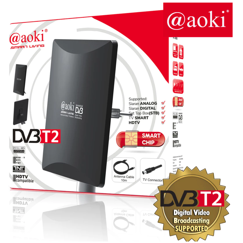 AOKI Antena AT3000 didesain khusus untuk menerima sinyal digital terestrial broadcasting. Kami menemukan bahwa antena ini kompatibel penuh dengan sinyal TV digital dan analog (DVB-T2), sehingga Anda tidak perlu khawatir ketinggalan siaran favorit, baik yang masih analog maupun yang sudah beralih ke digital. Antena ini bekerja pada frekuensi UHF 470-810MHz atau 470-860 MHz, yang memang sesuai untuk frekuensi TV di Indonesia.