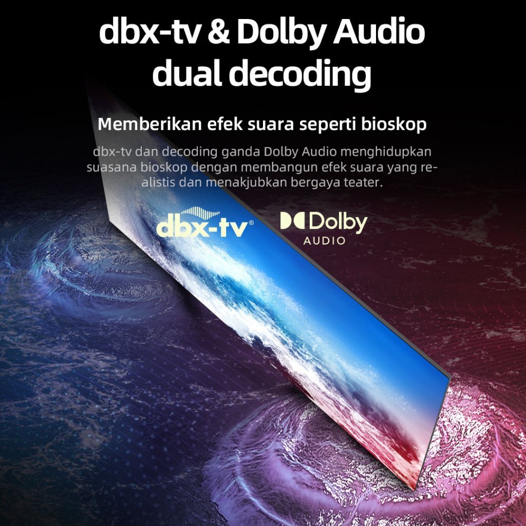 - Audio Berkualitas: Dukungan Dolby Audio dan teknologi dbx-tv memberikan kualitas suara yang jernih dan mendalam.