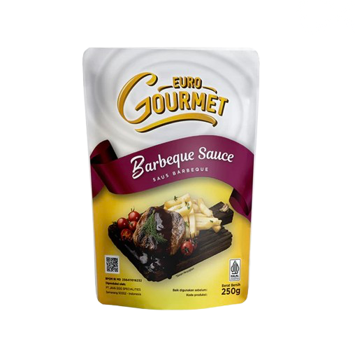 Secara spesifikasi, Euro Gourmet Barbeque Sauce tersedia dalam kemasan 250 gram dan 500 gram, memudahkan Anda memilih sesuai kebutuhan. Produk ini juga telah memiliki izin edar BPOM RI MD 256411016232 dan bersertifikasi HALAL INDONESIA, memberikan rasa aman bagi konsumen. Saus BBQ ini memiliki cita rasa yang unik dan mewah, perpaduan rasa asam, gurih, dan sedikit pedas yang akan memanjakan lidah. Dengan profil rasa yang kaya, saus ini sangat identik dengan masakan gaya Barat dan serbaguna; cocok sebagai olesan panggangan atau dicampur langsung dalam masakan seperti steak, spageti, daging bakar, atau sosis bakar.