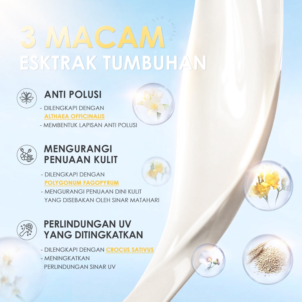 Yang membuat produk ini istimewa adalah formulanya yang diperkaya dengan berbagai ekstrak tumbuhan. Kami menemukan kandungan Polygonum Fagopyrum (Buckwheat) dan Crocus Sativus (Saffron) yang berperan aktif dalam membantu mengurangi risiko kanker kulit akibat paparan sinar matahari. Tak hanya itu, ada juga ekstrak Althaea Officinalis (Marshmallow) yang bertindak sebagai agen anti-polusi, menciptakan lapisan pelindung pada kulit untuk menangkal kontak langsung dengan partikel polusi.