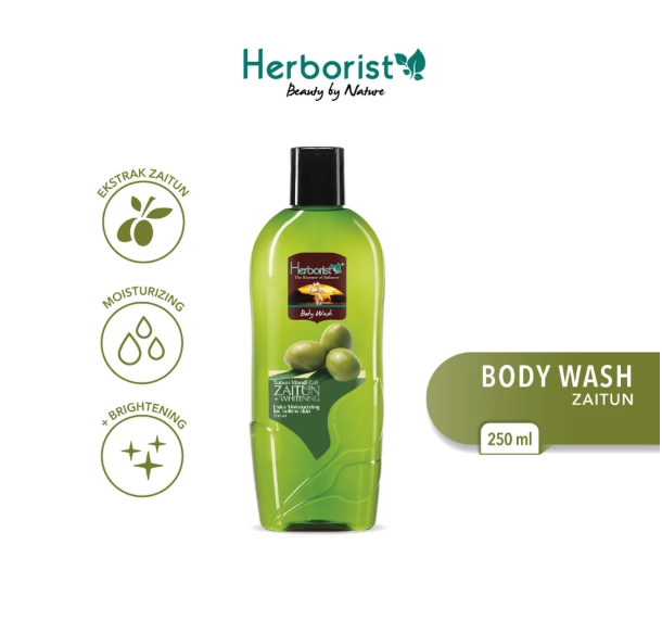 Herborist Sabun Mandi Cair Zaitun + Whitening merupakan pembersih tubuh sediaan cair yang diformulasikan untuk menjaga kelembapan dan kelembutan kulit. Produk ini diperkaya dengan minyak zaitun alami yang dikenal kaya akan antioksidan. Selain itu, Herborist juga menambahkan agen whitening atau ekstrak pencerah yang bertujuan untuk membuat tampilan kulit tampak lebih cerah.