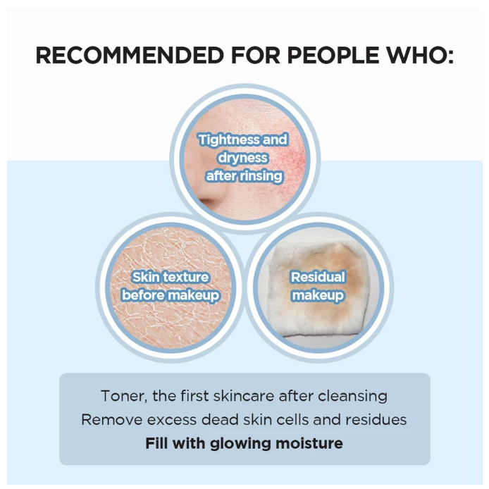 Tidak hanya itu, toner ini juga diperkaya dengan AHA (Alpha Hydroxy Acid) dalam bentuk Citric Acid dan LHA (Capryloyl Salicylic Acid). Kedua eksfolian lembut ini berfungsi untuk mengangkat sel kulit mati dan kotoran dari permukaan kulit, membantu membersihkan pori-pori, dan meningkatkan tekstur kulit tanpa menyebabkan iritasi berlebihan. Beberapa bahan penting lainnya meliputi Niacinamide, yang dikenal untuk mencerahkan kulit dan mengurangi tampilan bintik hitam, serta Ceramide NP untuk mendukung dan memperkuat skin barrier. Adenosine juga hadir untuk membantu memperbaiki tampilan garis halus dan kerutan. Toner ini dikembangkan untuk berbagai jenis kulit, termasuk kulit sensitif, normal, kering, dan kombinasi, serta efektif untuk mengatasi masalah kulit kusam, tekstur tidak merata, dan kekeringan.