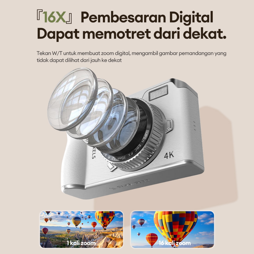 - Digital Zoom, Bukan Optical Zoom: Kebanyakan kamera digital ringkas semacam ini hanya mengandalkan digital zoom, bukan optical zoom. Digital zoom pada dasarnya hanya membesarkan piksel yang sudah ada, sehingga dapat mengurangi ketajaman gambar jika digunakan berlebihan.