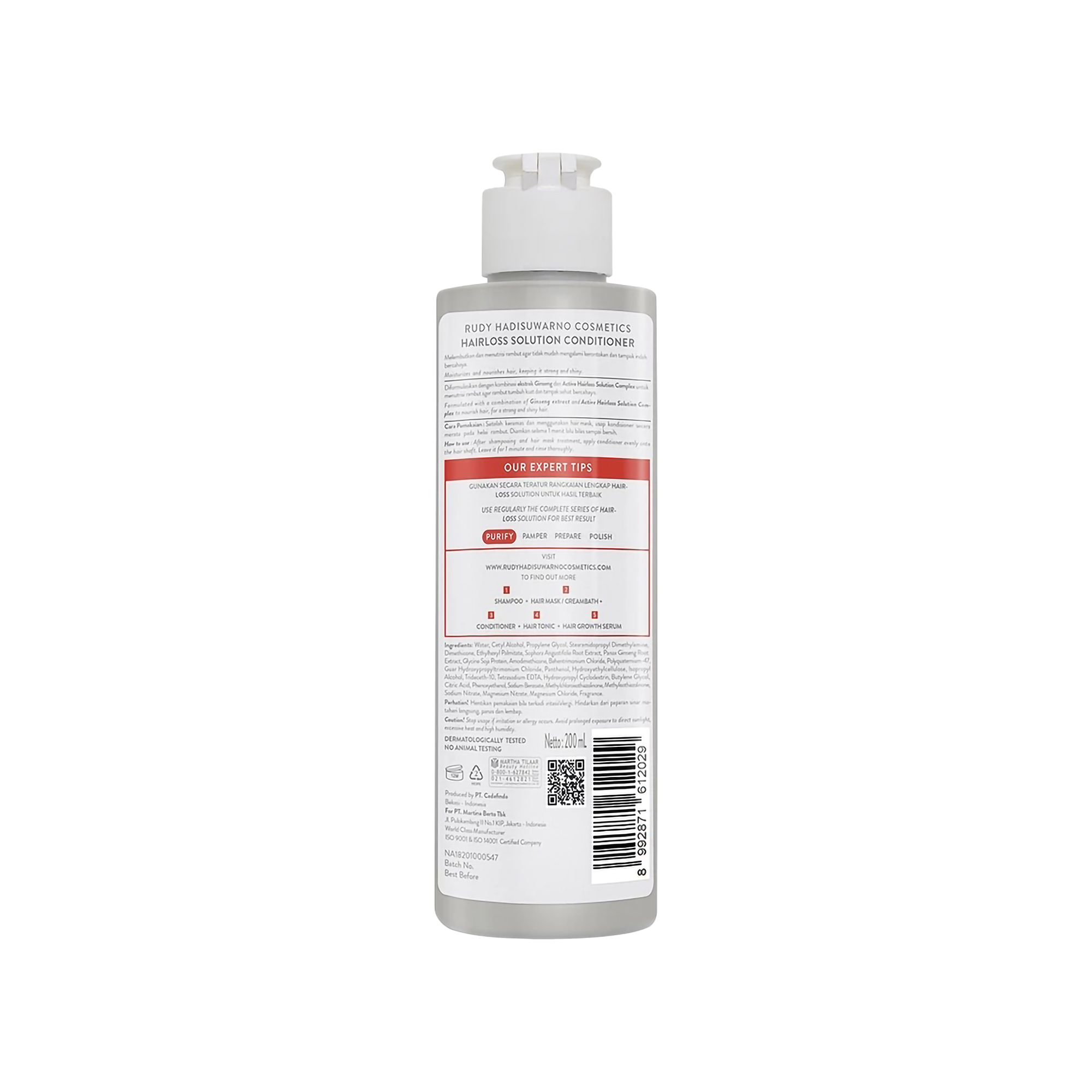 Produk ini merupakan bagian dari seri Hairloss Solution dari Rudy Hadisuwarno Cosmetics, sebuah nama yang sudah tidak asing lagi di industri perawatan rambut Indonesia. Kondisioner ini dikemas dalam botol berukuran 200 ml yang praktis dan mudah digenggam, menjadikannya teman setia di kamar mandi Anda.