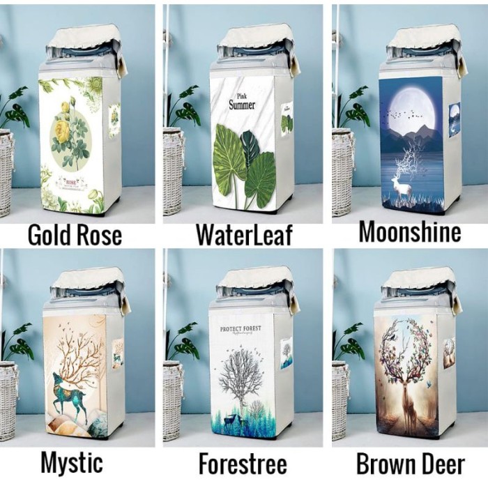 Material ini ringan, tahan lama, dan mudah dibentuk, sehingga cocok untuk berbagai model mesin cuci. Penutup ini tersedia untuk berbagai tipe mesin cuci, baik bukaan atas (top loading) maupun bukaan depan (front loading), dan umumnya hadir dalam berbagai ukuran yang dapat disesuaikan dengan kapasitas mesin cuci Anda, misalnya 6-20 kg. Desainnya pun biasanya dibuat simpel dengan tujuan fungsionalitas maksimal, meskipun tidak jarang ditemukan dengan motif-motif menarik yang dapat mempercantik tampilan mesin cuci Anda.